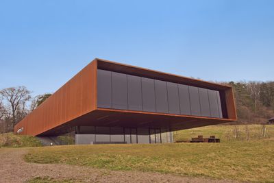 The museum building features a cubic steel-plated structure situated within a 37-hectare Celtic archaeological park, displaying ancient artifacts and exhibitions.