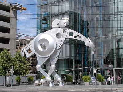 S-Printing Horse, Heidelberg, Steel sculpture at Print Media Academy in Heidelberg, Germany.