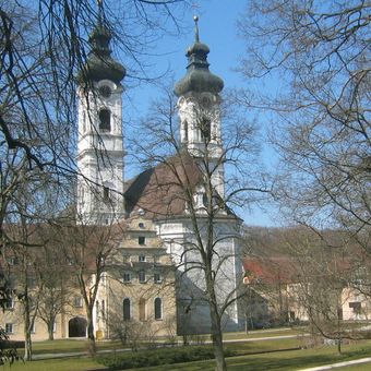 Construction began in 1739 under Abbot Augustin Stegmüller, replacing a Romanesque basilica, and the church received its final consecration in 1765.