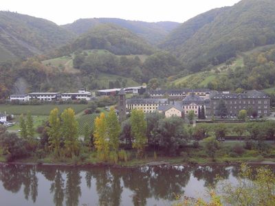 The monastery operates a winery since 1673, producing Riesling, Pinot Gris, Pinot Noir, and Pinot Blanc on the slopes of Mosel Valley.