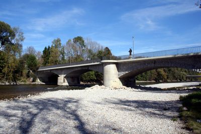 Located at coordinates 48.3973 latitude and 11.7517 longitude, the bridge provides essential passage for both vehicles and pedestrians across the Isar River.