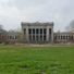 Kulturhaus Zinnowitz is a building with five connected wings arranged symmetrically and featuring columns along the side sections. Inside were a theater hall, a dance cafe, a library, and a dining room that together formed a multipurpose cultural center.