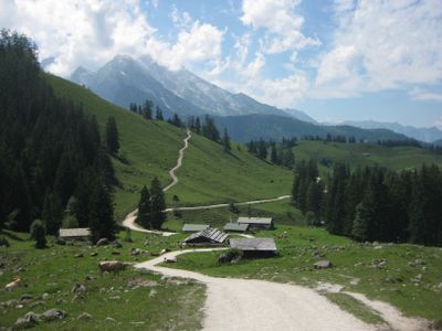 Königsbachalm, Mountain hut and pasture in Schönau am Königsee, Germany.