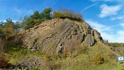 In 1968, extensive basalt mining operations transformed the formerly cone-shaped peak into a crater-like formation, extracting 1.8 million tons of rock material.