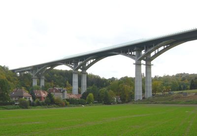 The Lockwitztalbrücke extends across the Lockwitz Valley, connecting the towns of Kreischa and Dohna through a contemporary steel and concrete structure.