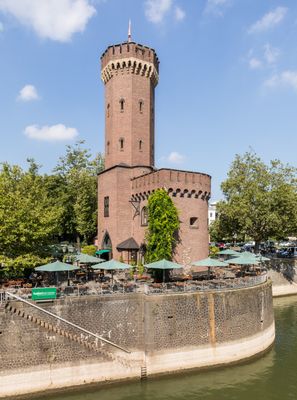 Built in 1855 as part of Cologne's Rhine fortifications, the tower served as a defensive structure during Prussia's expansion of the city's port.
