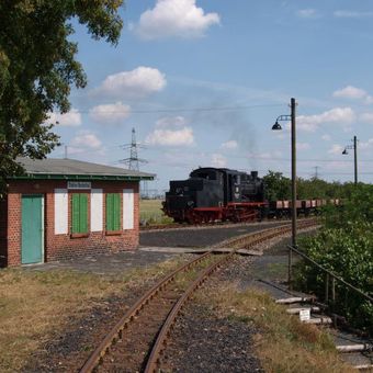 The railway began operating in 1885 and grew quickly to support copper mining in the region, connecting multiple mines and processing facilities to one another. It played a key role in transporting ore and workers during the heyday of the Mansfeld mining region.