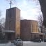 The church stands as a round, centralized structure with modern architectural elements, designed by architect Clemens Holzmeister with emphasis on geometric forms.