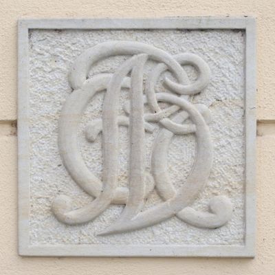 Buchstabenstein, Baroque monogram relief at Seelensteig, Meissen, Germany.