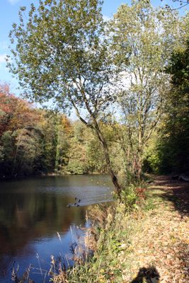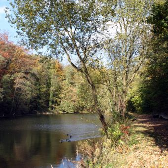 The 1-hectare Adolf-Dasbach pond, created from an old mining pit, reaches 4.8 meters deep and serves as a protected habitat for water birds.