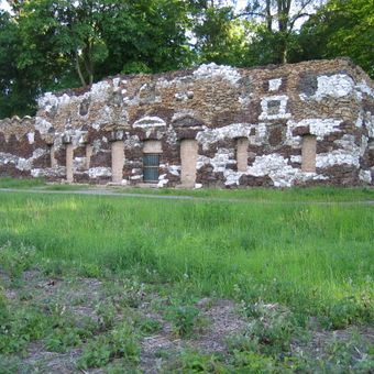 The shell-decorated grotto stands at the northern end of New Garden near Jungfernsee Lake, featuring walls made of tufa and bog iron ore.