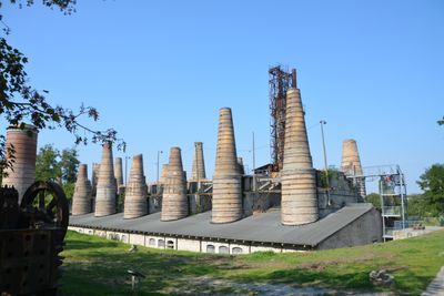 The park exhibits architectural works designed by prominent builders like Schinkel, featuring technical structures that represent different industrial development periods.