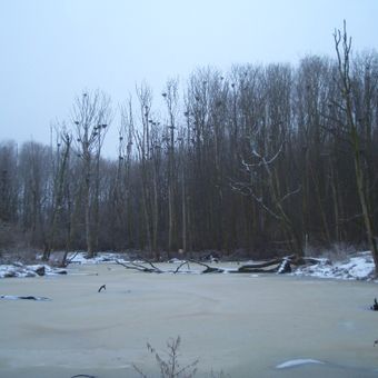 Kormorankolonie bei Niederhof, Protected bird area in Sundhagen, Germany.