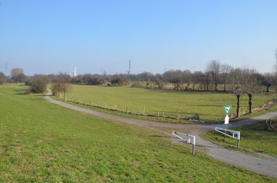 A path on the Rhine dike provides opportunities for walking and cycling while observing the diverse landscape and wildlife throughout the seasons.