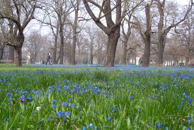 In spring, large areas turn blue with the blooming of Siberian squill flowers. This delicate natural display appears year after year and creates a striking visual effect.