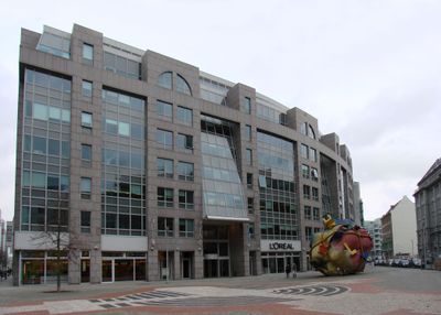 The building marks a point of transformation in the city's geography after reunification, when this area began to reconnect and develop new uses. People move through and around it as part of their daily routines, making it part of the urban fabric that shapes how the neighborhood functions today.
