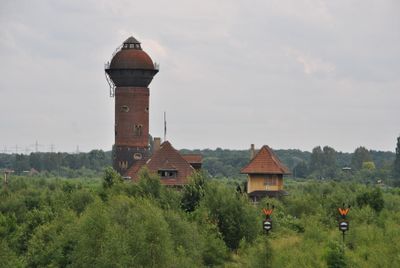 The preserved signal box and brick water tower from 1912 represent North Rhine-Westphalia's industrial railway infrastructure development.