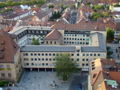 The Rathaus houses an honor room designed by sculptor Karl Knappe, commemorating 11,000 Heilbronn residents who died during World War II.