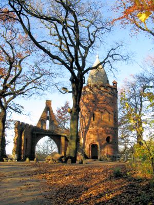 The structure was built in 1907 as a memorial to Friedrich Wilhelm, who drowned in the North Sea in 1897, following the concept of an incomplete castle.