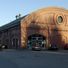 The dining experience takes place under an preserved industrial crane, combining the building's mechanical heritage with modern gastronomy in an unexpected setting.