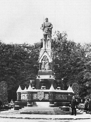 The central figure was changed from Borussia to Roland during construction, altering the original design concept of representing Prussia.