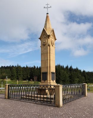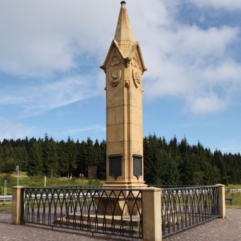 The Rondell stands as an obelisk marking the intersection of Thuringian State Road 3247 and the Rennsteig hiking trail at 826 meters above sea level.
