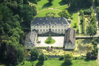 The original castle Niederalme was built in 1506 by Gerhard von Meschede, while the current baroque water castle was constructed in the first half of the 18th century.