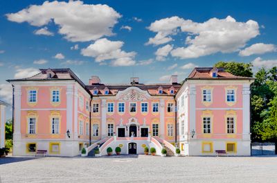 The estate maintains its architectural legacy through a combination of Rococo elements, including the garden layout and the oval dome hall design.
