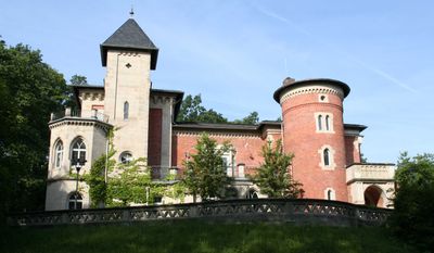 The castle gardens contain a seven-meter sandstone obelisk monument dedicated to poet Moritz August von Thümmel and the tomb of Countess Adrienne Elisabeth von Corneillan.