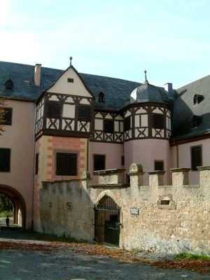 The castle ruins stand on elevated ground in Hammelburg district, featuring medieval stone walls and architectural elements from different construction periods.
