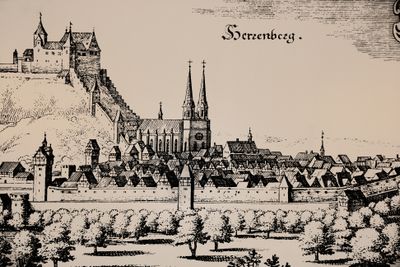 The castle's representation in the council chamber of Herrenberg's town hall depicts the history of the Palatine castle through detailed paintings.