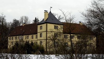 The castle estate extends over 200 hectares of forest land and maintains its status as a cultural heritage monument in Germany.
