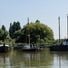 Schiffbrücke alte Wuppermündung, Footbridge at Wupper River mouth, Leverkusen, Germany.