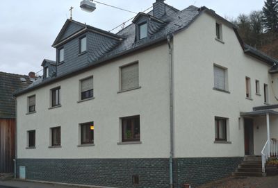 The Serbian Orthodox monastery Skite des heiligen Spyridon sits along the Lahn River in Rhineland-Palatinate, featuring a converted chapel in a former guesthouse building.