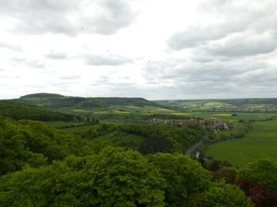 The mountain's elevation provides clear views extending from the High Rhön ranges to Kreuzberg, Hassberge, Steigerwald in the east, and Spessart in the southwest.