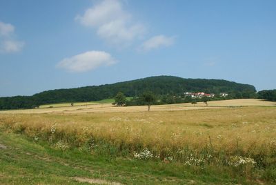 Soisberg is a mountain summit in the Rhön range that rises to about 630 meters and is covered with mixed forest and sandstone outcrops. The peak itself offers views across the surrounding landscape, with forest on the slopes giving way to open areas at higher elevations.
