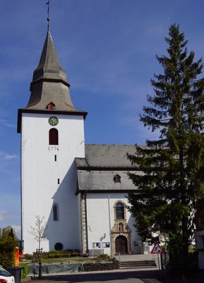 The single-nave church of St. Jakobus features five bays, with the western bay extending two meters wider than the others.