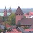 The church stands at the center of Lohne at Rixheimer Square, with a capacity of 1000 seats and two prominent towers visible across the cityscape.