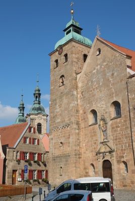 The interior of St. Emmeram contains the Spalter Madonna, a late Gothic sculpture from 1519, measuring 60 centimeters and commissioned by Georg Spalatin.