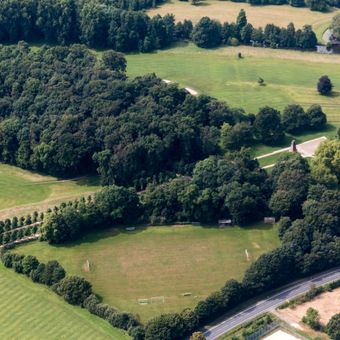 Steinfurter Bagno is a large landscape park spread across woodland and meadows between the Borghorst and Burgsteinfurt districts, featuring a lake with islands and several historic buildings. The grounds offer varied natural spaces and structures that tell the story of its past use.
