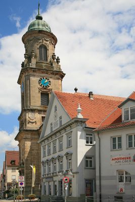 Located in central Hechingen, the church underwent extensive tower renovations from 2016 to 2020, with additional restoration work planned for the building's foundation.