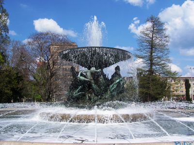 Robert Diez created the fountains between 1883 and 1894, with the first fountain cast in bronze in 1892 and the second completed two years later.