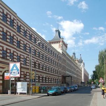 The factory buildings, designed by architects Pfeiffer and Händel between 1888 and 1898, exemplify the Wilhelminian architectural style of German industrial construction.