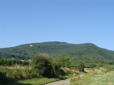 The mountain includes a subpeak called Lambertskopf at 539 meters, offering extensive views across the Upper Rhine Plain throughout all seasons.