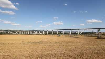 The Unstruttalbrücke extends 2,668 meters across the Unstrut Valley, making it the second longest railway bridge in Germany after the Saale-Elster-Talbrücke.