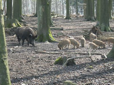 The park includes educational paths focusing on wild boars, with information displays and observation points teaching visitors about native wildlife species.