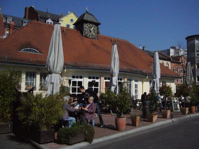 The square features traditional German urban planning elements with open spaces surrounded by both residential and commercial buildings at its edges.