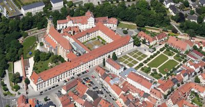 The Jesuit College is a four-sided complex with a baroque facade in Amberg's old town, standing directly beside St. George's Church. The building encloses a spacious courtyard and today houses several functions, including a library and residential spaces.