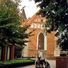 The monastery features a single-nave brick church with a steep gable and cross vaults spanning across five interior bays.