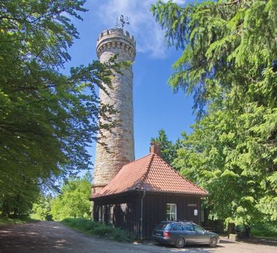The sandstone Süntel-Tower rises 25 meters above the ground, providing visitors with panoramic views of the Weser Uplands and surrounding valleys.